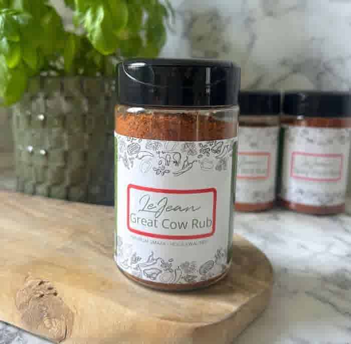 Bestrooi het vlees royaal met LeJean’s Great Cow Rub. Wrijf de kruidenrub goed in en zorg voor een gelijkmatige verdeling. Laat het vlees daarna één uur rusten zodat de smaken goed kunnen intrekken. Bereid vervolgens het vlees op de barbecue of grill voor een krokante korst en een volle smaak.