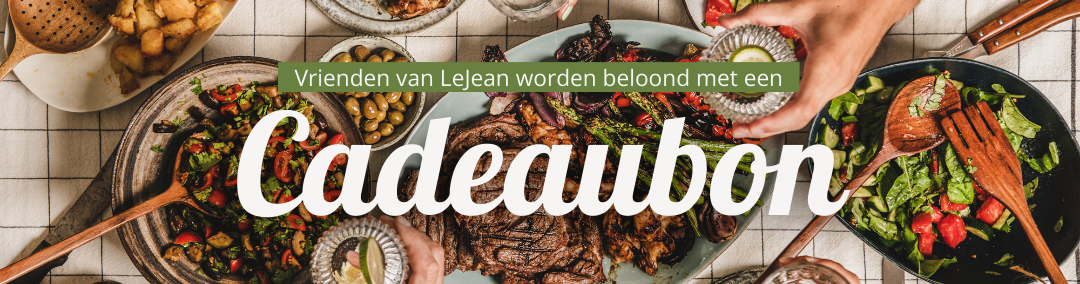 Dankzij jouw vertrouwen en enthousiasme groeit LeJean en dat waarderen wij enorm. Daarom doen we graag iets extra’s terug. Vertel je jouw vrienden, familie of buren over LeJean en plaatsen zij hun eerste bestelling bij ons? Dan bedanken wij je persoonlijk. Dan krijg je van ons een cadeaubon t.w.v. €15, gewoon omdat je ons hebt aanbevolen.